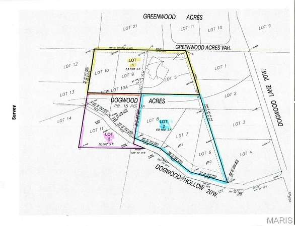 Est $473/moOne of 3 Adjoining Lots totaling 3.47 Acres for Sale in Dogwood Acres. Heavily wooded and perfect for Building your Custom Dream Home or Private Getaway. Paved Roads. Nearby Public Utilities. Easy access to New Hwy 21. Minutes from Arnold or Fenton. Rock Creek Sewer and Water District (C-1). Property backs to Greenwood Acres. Fox C-6 Schools!