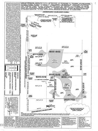 23.75 acres centrally located 15 minutes to the beach, a few minutes east to shops, groceries and restaurants. Over 600 ft. of frontage along Indian River Blvd. (SR442), with an L-Shape to Hideaway Lane (over 400ft. frontage), 6.98 acres of upland, 2.75 acres of upland buffer, with recent 2/1/24 survey. Partially cleared property includes 60x30 cement floored storage building with electric and water. Perfect location for a storage facility, Boat or RV covered storage along W Indian River Rd. The city of Edgewater is moving its offices to the this area and many of the parcels are already sold along this four-lane paved divided highway just off I-95. This is in the immediate vicinity of Miami Corps three development sites proposed to add nearly 33,000 homes and over 9 million sq.ft. of commercial space. Includes parcel ID's: 843801000700, 843801000710, 843801000720