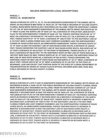 IRREG PARCEL IN LOTS 71 72 73 79 & 80 ASSRS SUB BETTS GRANT MEAS 858.95 FT ON W/L & MEAS 603.36 FT ON S/L EXC NEW R/W FOR SR 442 IN S 94.49 FT PER OR 2107 PG 0136 PER OR 5287 PGS 1318-1319 PER OR 6911 PG 2961 PER OR 7507 PG 2757