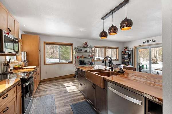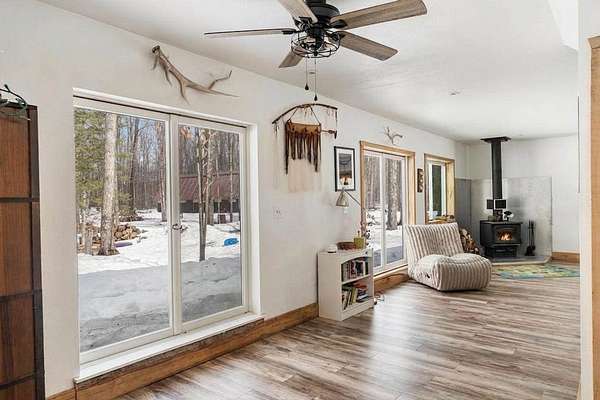 - Borders State Land, Ceiling Fans, Dishwasher, Double, Dryer, Near Snowmobile Trails, Range, Refrigerator, Standby Generator Vinyl, Washer, Wood Floors, Wood Stove
