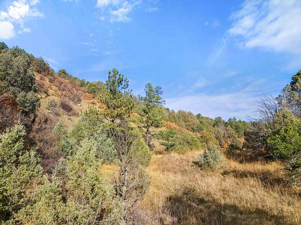 Located in Las Animas County within Fisher Peak Ranch, this secluded end-of-the-road acreage provides quiet surroundings, privacy, and access to diverse terrain. The property sits only minutes from Trinidad, Colorado, Trinidad Lake State Park, and tens of thousands of acres of public lands. Nearby communities include Raton, New Mexico approximately 20 miles to the south, and Aguilar, Colorado approximately 25 miles to the north, offering additional services, supplies, and recreation opportunities. A gated entry and maintained ranch roads provide practical access to the tract. Electricity is located near the boundary, offering installation opportunities for residential or recreational use. The terrain contains rising ridges, wooded hillsides, and valleys, creating several elevated build sites with surrounding views. Vegetation includes ponderosa pine, oak brush, and scattered open meadows at lower elevations. A spring is located to the north, with smaller seasonal flow areas visible in the drainage on this parcel.