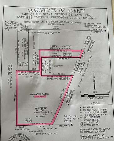 Legal Description COM NE COR SEC 33, T37N,R2W; TH S 90D W 407.53FT TO C/L OF INDIAN TRAIL RD; TH S 24D 10M 44S W 318.33FT TO POB; TH S 90D W 800.5FT; TH N 290.40FT TO N SEC LI; TH S 90D W 149.75FT; TH S 1321.15FT; TH N 89D 56M 36S E TO C/L OF INDIAN TRAI