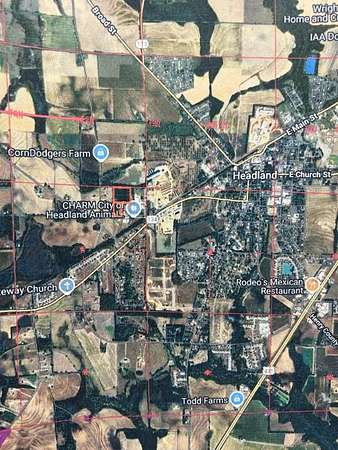Est $1,429/mo14+-ac of Vacant Land in Rob Parish Industrial Park, Headland, Al. Power, water, natural gas, phone, cable at road. Open and Wooded Areas. Partially Fenced and Surveyed. Located at the end of W Industrial Dr. 1 mile to Hwy 134, 1.2m from Downtown Headland. 2 miles to Hwy 431.