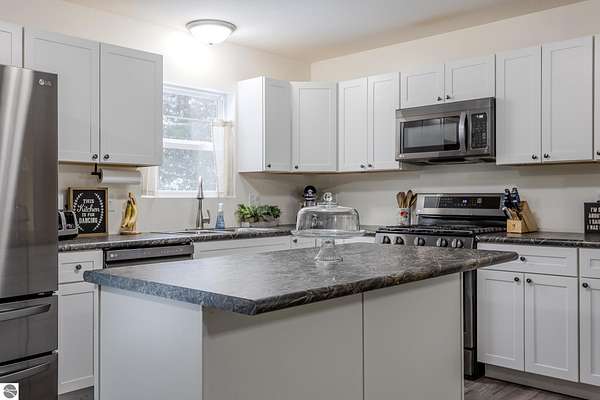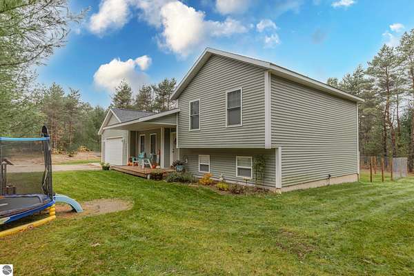 Beautiful 3 Bedroom, 2 Bath Tri-Level Home with Exceptional Privacy. Discover this beautifully maintained tri-level home offering complete privacy--you can't see a single neighbor--yet you're just minutes from Traverse City, Honor, Crystal Mountain, and nearby State Land for endless outdoor recreation. Step inside to an inviting main level with gorgeous vinyl plank flooring that flows throughout the living areas and bath. The bright living room is perfect for relaxing, while the finished lower level features a spacious family room, an ideal office area, and a walk-out to the peaceful yard. Storage is abundant thanks to an oversized concrete-floor crawl space, offering an impressive amount of clean, usable space. With plenty of land surrounding the property, there's room to add a second garage or pole building to suit your needs. Enjoy the quiet setting from the private rear deck, perfect for morning coffee, evening unwinding, or entertaining guests. The thoughtful floor plan makes hosting easy and enjoyable. There is a 50 amp RV hookup too! If you're looking for a well-kept home with privacy, convenience, and room to grow--this property is a must-see. This might be the perfect vacation home get away too!