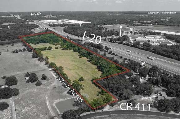 37+ acres located along Interstate 20 in Lindale between Hwy 69 and TollWay 49. This property has great potential. It has over 2,300 feet of frontage on Interstate 20. Buy now while the PRICE IS RIGHT! Appraisal in file to support original list price. Once a frontage road is in, this price will increase. The property is currently accessed by CR 411. Property is adjacent to approx 135 acres owned by the Lindale EDC and is zoned C-2. Talk about a great value!!