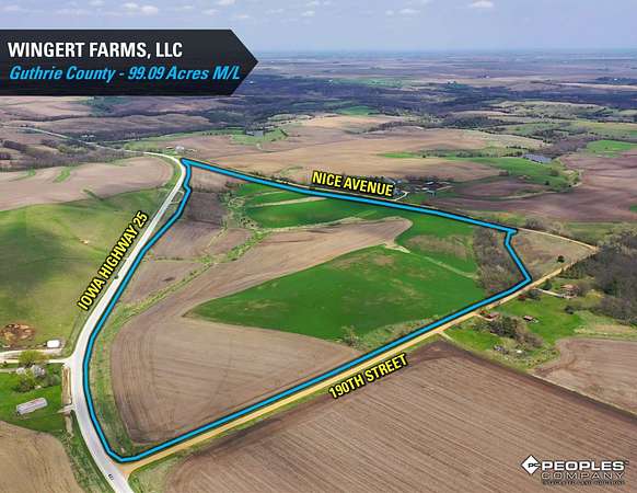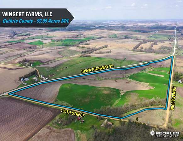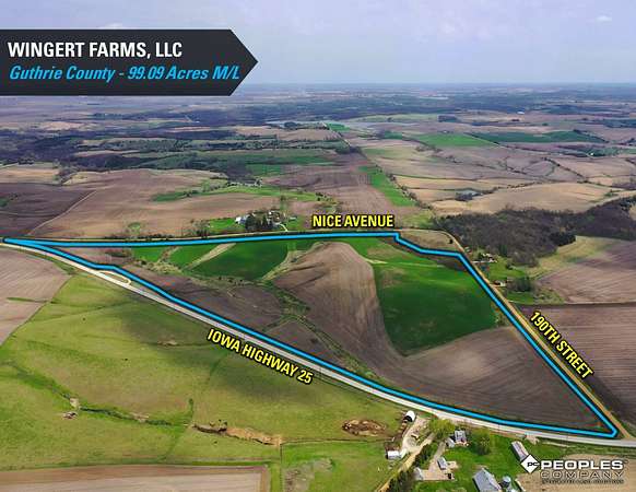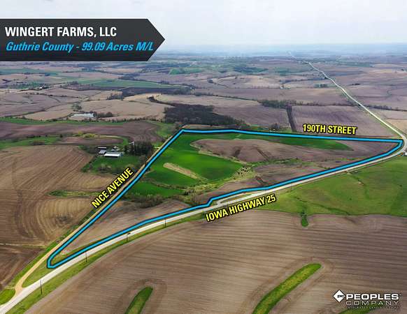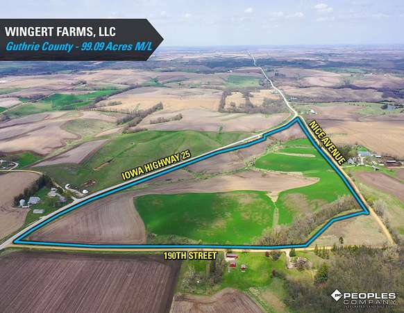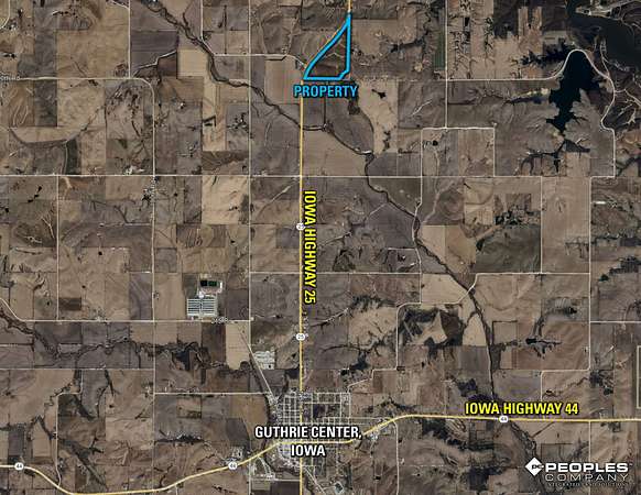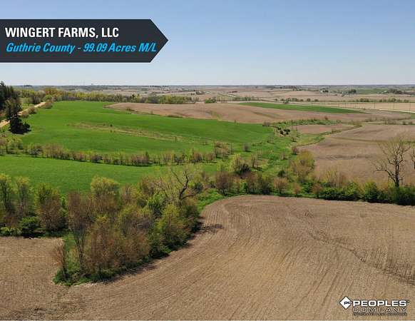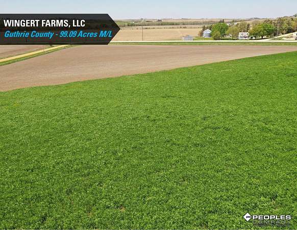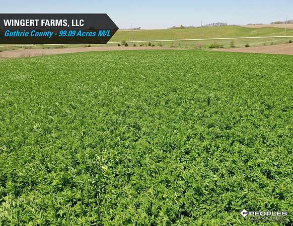 Guthrie County, Iowa Farmland Available! Peoples Company is representing the sale of 99.09 acres m/l located 3.5 miles north of Guthrie Center, Iowa on paved Iowa Highway 25 and in Section 18 of Victory Township. The farm includes 87.33 FSA cropland acres with 45.09 acres certified as cropland and 42.24 acres certified as alfalfa/grass. This gently rolling farm has an overall tillable CSR2 soil rating of 58.4. The alfalfa stand is two years old and has received fertilizer applications and reseeding to help get it established. Conservation practices are being actively applied, and several waterways have been re-worked and seeded down.