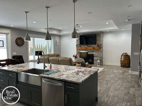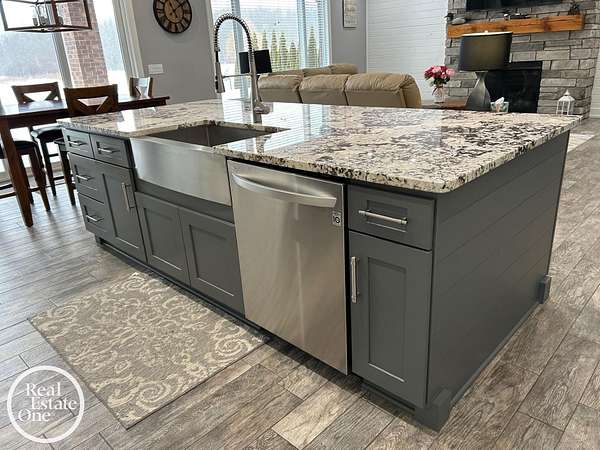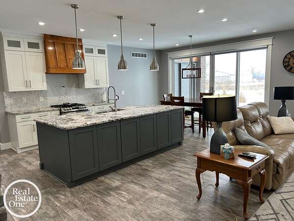 Newer construction and not your ordinary build. Built and occupied by owner. Spacious open floor plan features high-end kitchen cabinets with pullouts, large island with granite counters. Unobstructed views to great room with custom stone fireplace. An oversized door wall opens to a large covered patio and views of 1,000 foot deep private lot. Solid 36 inch doors and planked ceramic flooring throughout (except bedrooms). Three full baths have walk-in showers and custom tile work. The primary bedroom and bathroom suite has large walk-in shower a soaking tub and walk-in closet. All interior and exterior walls with extra insulation including large open basement with 9 foot ceilings. Four car attached garage, whole house generator, and more. See associated docs for list of upgrades and features.