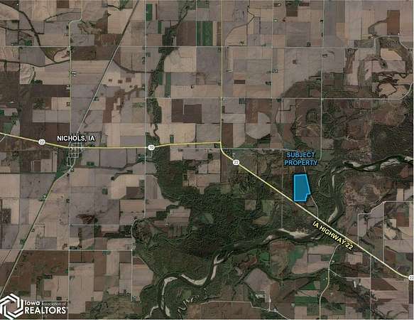 From Nichols, IA: Travel east on IA Highway 22 for 2.5 miles. At the stop sign turn south and continue on Highway 22 for another 2.5 miles. Turn north on Iron City Avenue and travel north for a half mile. The property will be located on the west side of the road.