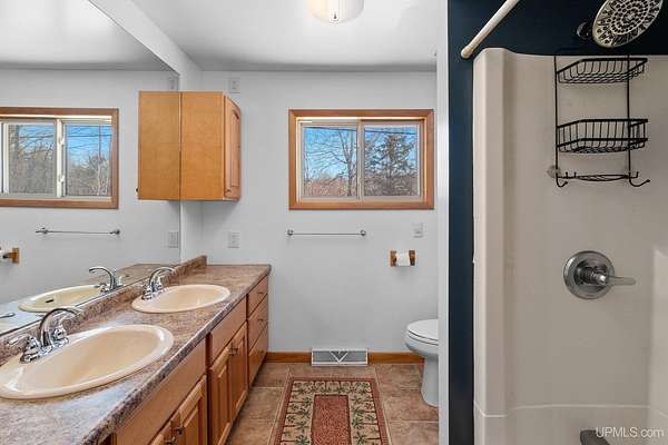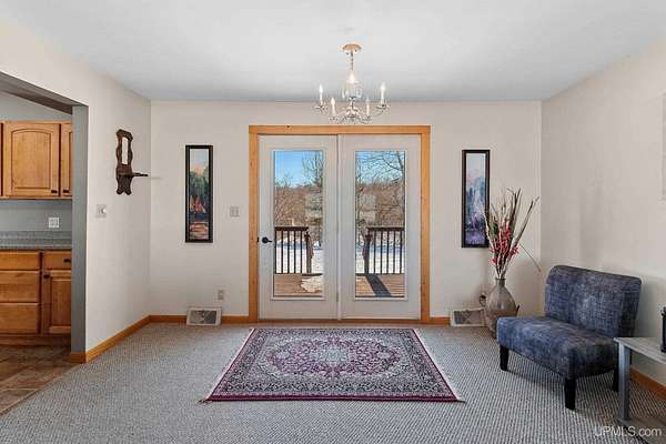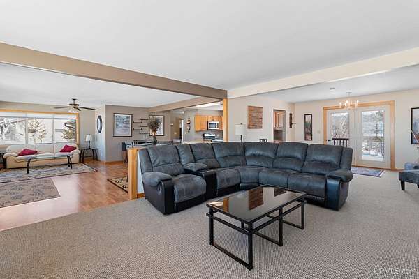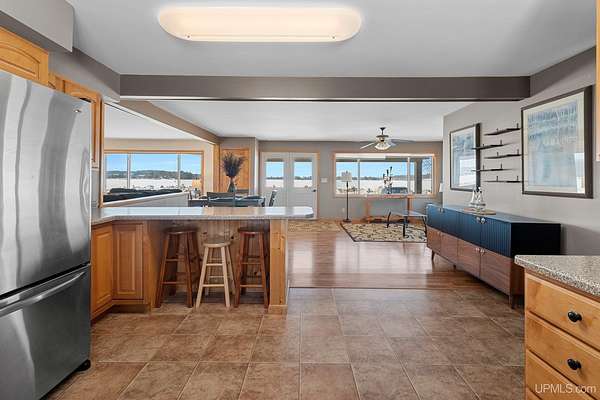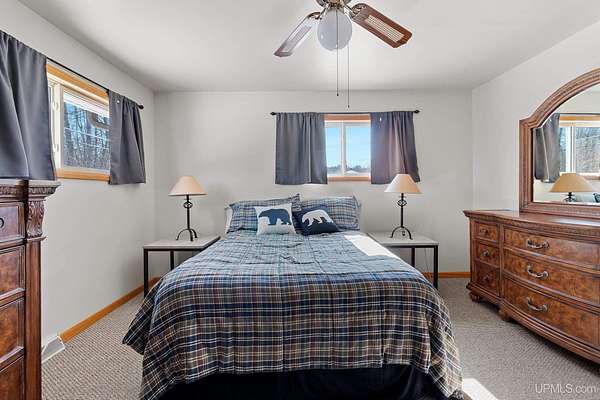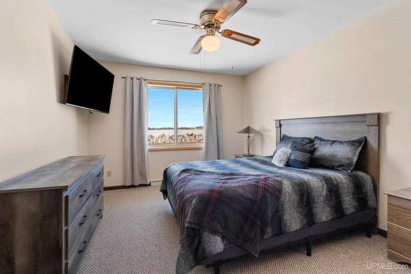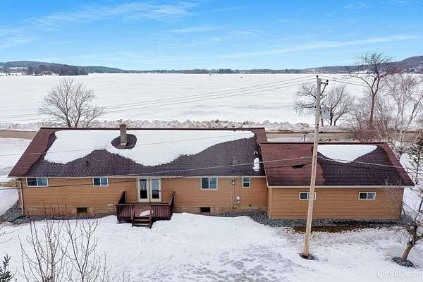 This spacious 3-bedroom, 2 full bath home offers comfort, stunning views, and incredible year-round recreation—all in one remarkable setting overlooking beautiful Lake Antoine. Step through the impressive double front doors into a generous front entry that sets the tone for this well-designed home. Large front windows frame breathtaking panoramic views of the lake, filling the formal living room and adjoining sitting area with natural light. Just off the kitchen, this cozy sitting space provides the perfect place to relax while still enjoying the scenery. The formal dining room offers patios doors leading to the back deck and fenced yard—ideal for entertaining or quiet evenings outdoors. First-floor laundry adds everyday convenience. Enjoy gorgeous sunsets with views stretching across open water for miles, including sightlines to the iconic Pine Mountain Ski Jump—a truly unique backdrop in every season. Across the road, you’ll find approximately 120+/- feet of water frontage featuring newer planted grass, stone landscaping, and a fantastic dock area ready for summer fun. Spend your days boating, fishing, jet skiing, and swimming, then transition seamlessly into winter enjoyment with ice fishing and snowmobiling. Nearby recreational walking and biking trails make this location even more appealing for outdoor enthusiasts. Additional highlights include a large finished 2-car attached garage with direct access to the basement, providing both convenience and extra storage space. Benefit from desirable Breitung Township taxes while still being just minutes from Ford Airport with service through Delta Airlines for easy travel. With spectacular lake views, abundant living space, and unmatched recreational opportunities, this property offers a lifestyle you’ll enjoy every single day.