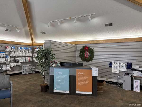 Est $1,351/moUS Hwy 2 Commercial building! This building is currently leased by a Medical Product co., a nail salon, hearing aid service along with 2 apartments upstairs. There is a vacant main level commercial space all ready for a buyer to use, or select their next tenant. This building has a front parking lot and a large area behind for additional parking that can exit on Francis St. Nicely maintained, this building has a newer roof and a convenient location with prime US 2 visibility.
