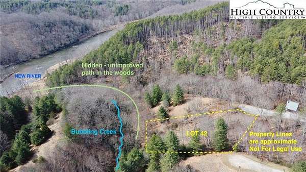 LOT#42 borders NC State Park land, giving you direct access to miles of trails and untouched wilderness. The New River - renowned for fishing, paddling, and scenic views - is just at your backyard, making it easy to enjoy the outdoors whenever the mood strikes.