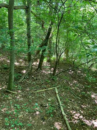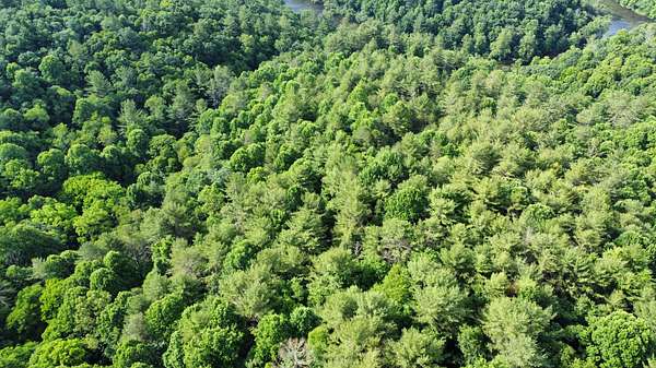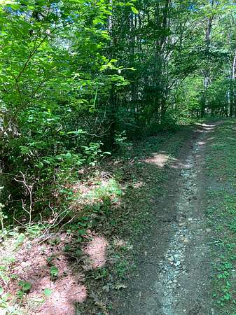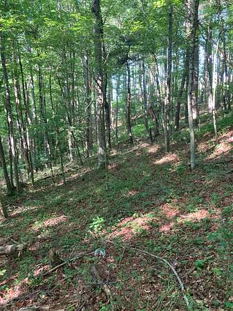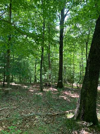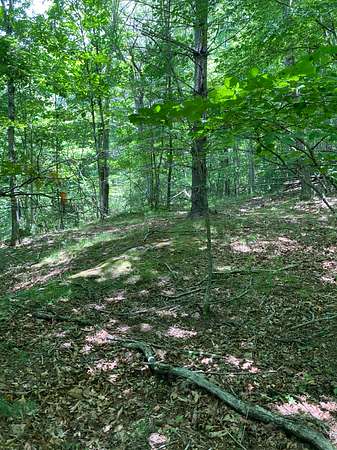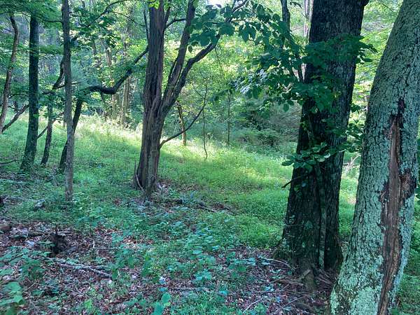 Located near Island Ford Road with paved access, the land is easy to reach while still providing a wooded and private atmosphere. A small creek runs through the property, adding a peaceful natural feature. The terrain is gently sloped and covered with mature trees.