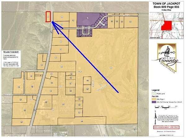This is a 1.83 acre +/- in Jackpot, Nevada. Jackpot is in Elko County. The north end of the lot borders Idaho. The eastern border adjoins HWY 93. (the "Welcome To Nevada" sign is on this lot.) The south west and northern borders are all BLM land. The property is an island as it touches no other private land. Being surrounded by BLM land means nothing else will ever be built next to this property. It is zoned commercial and it sits on the Nevada Idaho border. The property has paved road access and power as well! This would be an ideal place for a gas station, car wash, a nice modern hotel, billboards, restaurants, any roadside store or aide, could even be a Pot dispensary (Buyer to do their due diligence). Owner Financing is also available. Take a look at this lot yourself and have a hand in developing the small town of Jackpot! Please contact listing agent with any questions or concerns.