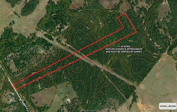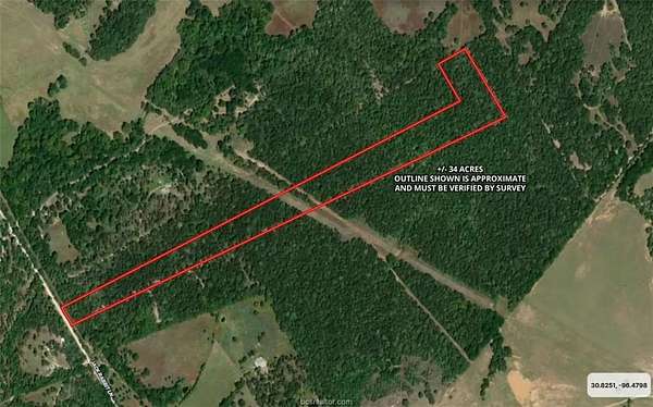 We will just call it a fine slice of East Texas Heaven. Gently rolling terrain densely populated with mature Post Oak, Water Oak, Elm, Cedar, Hickory, Green Ash and a smattering of Mulberry this +/-34 acre parcel provides a beautiful opportunity for a visionary with a firm hand to shape into a dream retreat. Located less than a 30 min drive from A&M Campus area where every amenity of Bryan/College Station is readily available. A two hour trip will get you to Austin and Houston and three hours of driving will get you to DFW or San Antonio. Abundant white tail and wild hog make hunting here very productive. If four wheel sports are your passion then blazing new trails will provide endless hours of adventure and entertainment. Multiple locations for your dream home are also easy to find. OSR Water System is across the road. Agricultural Exemption in place. Interactive Satellite Map - https://id.land/maps/de0cbc53c1376789b9bf7ab29eab636d/share
