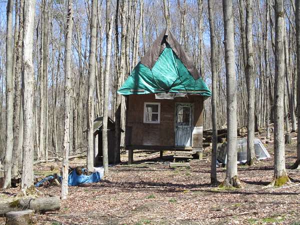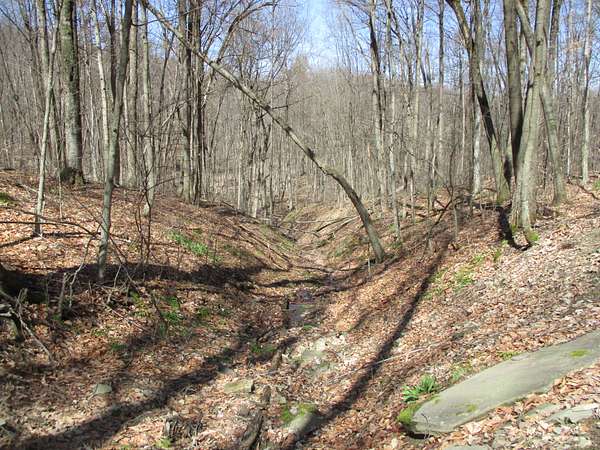 The topography ranges from fairly flat to moderately steep in places and a small intermittent stream runs through the property. A small 6 x 10 hunting shed is nestled in the woods and could be used as an off the grid shelter.