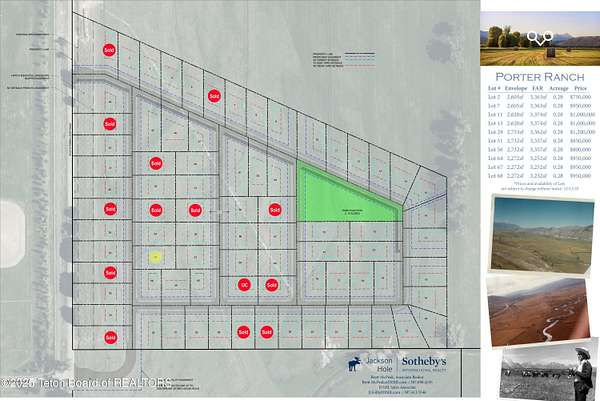 Steeped in local history and lore, the Porter Ranch Subdivision's origins date back nearly a century to a different time in Jackson Hole. Nestled amidst the breathtaking ranchland of Jackson Hole lies the valley's newest neighborhood. This carefully planned subdivision bridges the area's rich ranching history with a promising future for our growing community. This ideal location on South Park Loop Road has direct access to the celebrated community pathway system, schools, shopping, and more. Each lot will be fronted by a paved street and sidewalks, and connected to utilities by the Town of Jackson (Water & Sewer), Lower Valley Energy (Electric & Natural Gas), Spectrum (Cable), and SilverStar Communications (Fiber Optic). Lot 56 offers 3,357 SqFt of development potential on .28 acres.