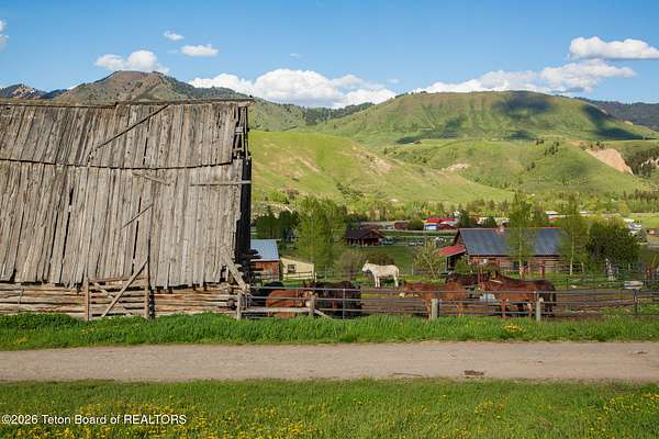 The Munger Mountain Ranch lies 7 miles south of the Jackson Town Square & is adjacent to the Munger Mountain Elementary School. It is bordered on 3 sides by the Bridger-Teton National Forest. The 84 acres consists of cultivated hay meadow, pasture & forested hillside. It has operated for nearly 100 years as a small cattle & horse ranch & maintains it AG tax status. The adjacent Forest Service lands are rich in diverse wildlife & habitat including winter-range & spring nursery lands. This 84-acre parcel is one of the last large tracts of land in Teton County. Approximately 35 acres is zoned Rural-2 while the remaining 49 acres is zoned Workforce Home Business. With less than 3% of the lands in Teton Cty privately owned, this rare, large parcel offers many possibilities & opportunities.