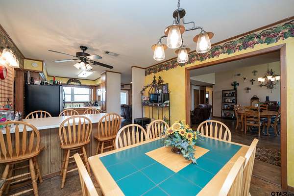 Welcome to this inviting 3 bedroom, 2.5 bath home nestled in the peaceful New Summerfield, TX area. Built in 1977 and set on a slab foundation, this home offers a comfortable layout with plenty of space for everyday living and entertaining. The open floor plan creates a natural flow through the main living areas, while offering a formal dining area which provides the perfect setting for gatherings and special occasions. Enjoy casual meals in the breakfast area, complete with a convenient bar that opens to the kitchen-ideal for morning coffee or hosting guests. Additional features include a 2-car carport, generous room sizes, and a layout designed for both function and flexibility. Whether you are looking for your first home or a peaceful place to settle down, this property offers great potential in a quiet East Texas setting. This property also features a pond, and a older barn on the back of the property. While boasting a larger barn with finished kitchen area and its own road entrance closer to the house.
