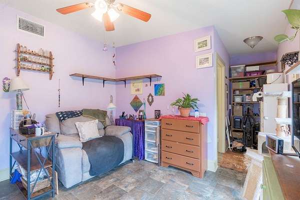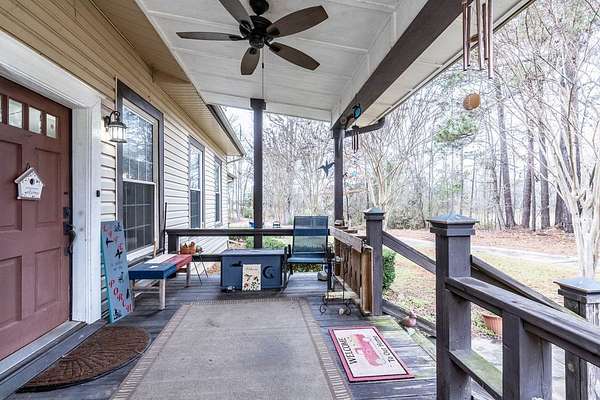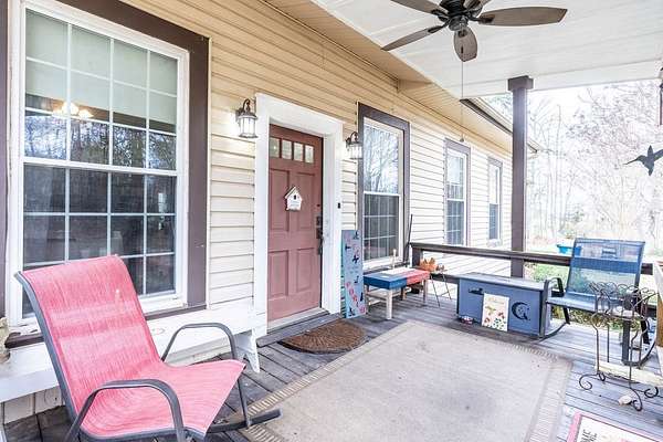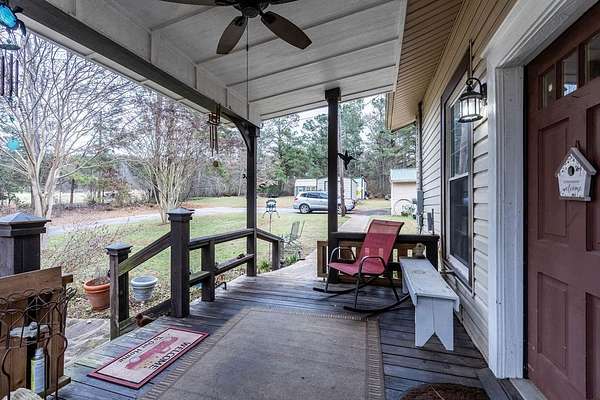 - Covered Front Porch, Detached Storage, Fence, Fenced Yard