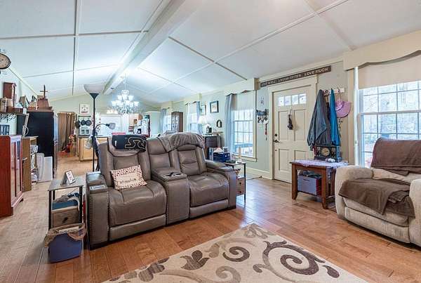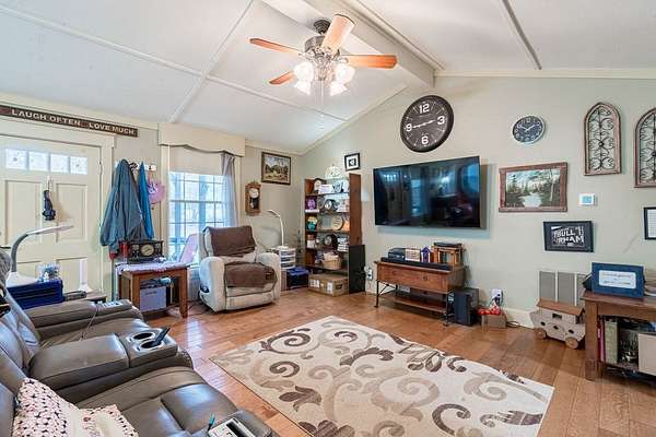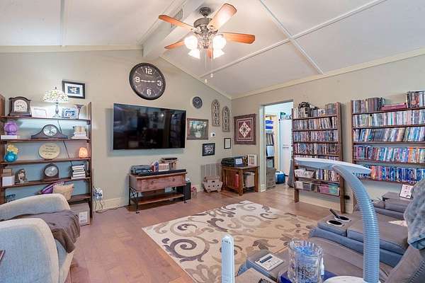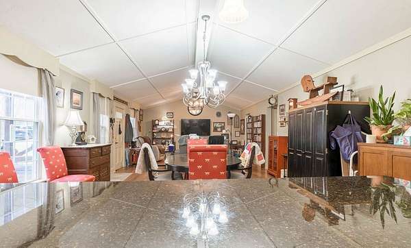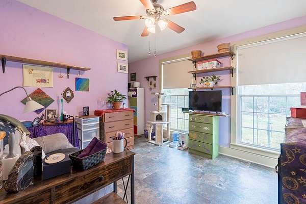 Welcome to 5520 FM 347 N, locally known as Wildwood, a one-of-a-kind 3-bedroom, 2.5 bath home set on two beautiful acres with a story to tell. Originally built as a one-room schoolhouse in the 1950s, then a chapel, this property was relocated to its current site in the 1970s & thoughtfully transformed into a warm & inviting residence while preserving its incredible charm & character. Today, it offers the perfect blend of storybook appeal & modern comfort. Inside, you'll find an open-concept living, dining, & kitchen area designed for gathering & entertaining. The spacious kitchen features a massive island, abundant storage, granite countertops, & stunning hardwood maple flooring. Primary bedroom has a sitting area & large walk-in closet. Major updates include new windows in 2008, spray foam insulation in 2019, & a new roof & HVAC system installed in 2022. Outside, the fenced yard is ideal for pets, while the detached two-car garage & multiple outbuildings provide plenty of room for hobbies, projects, or additional storage. RV or tiny home spot too! If you've been searching for a property with history, personality, & room to spread out, this rare gem delivers it all.
