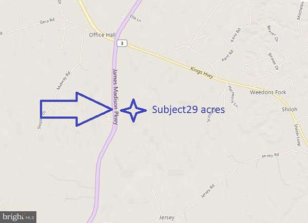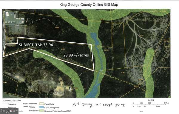 Rare opportunity to own 29 +/- acres of pristine, wooded land with approximately 300 feet of frontage on James Madison Parkway (Route 301) in King George County, Virginia. This expansive tract offers a private, natural setting with excellent visibility and convenient access to major commuter routes. Possible for subdivision. LOE, soil evaluation completed in 2021 indicate the area would support at least 4-bedroom conventional septic system. The site has been staked as Site 1-M (see soil documents attached). About 300' State road fronttage. Proximity to the Potomac River, Caledon State Park, and other natural attractions. Close to shopping, dining, commuter corridors, and outdoor recreation. 25 miles to Fredericksburg, 65 miles to DC, 55 miles to Richmond. CONTACT THE AGENT FIRST TO SHOW PROPERTY AND FOR MORE DETAILS.