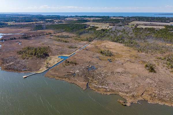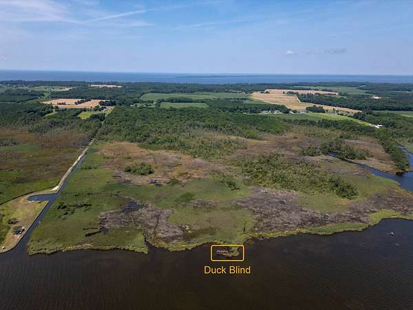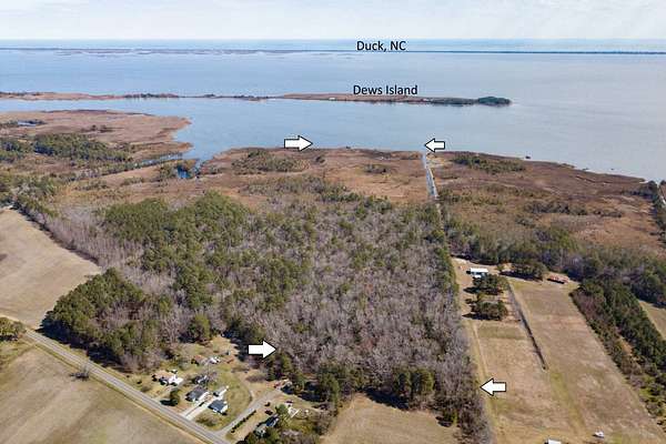 Discover the exclusive opportunity to own a vast 42-acre waterfront estate, nestled in the serene seclusion of Currituck Sound, just across the water from the charming town of Duck. Boasting a substantial 800 feet of pristine sound frontage with breathtaking views of Dews Island, this property includes a legally deeded duck blind, enhancing its appeal to waterfowl enthusiasts. The allure continues with an impressive 2,000 feet of canal frontage, perfect for private moorings or scenic strolls. Positioned a mere 8 miles from the anticipated Mid-Currituck Bridge, access is via a discreet entrance on Jarvisburg Road, ensuring utmost privacy. Whether you envision subdividing to create a luxurious waterfront community or preserving the expanse for a personal sanctuary, this property promises exclusivity and enchantment, complemented by the natural spectacle of migratory birds. Dimensions offer generous proportions, with approximately 289 ft. on the Northside, 2,851 ft. on the Southside, 502 ft. along the Roadside, and 822 ft. facing the Sound, laying the foundation for an unparalleled living experience.