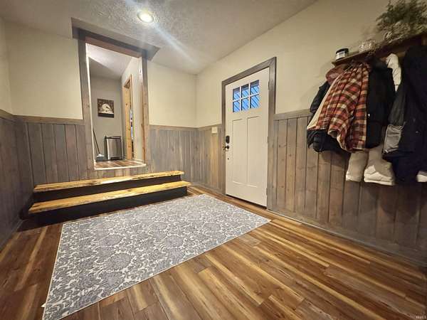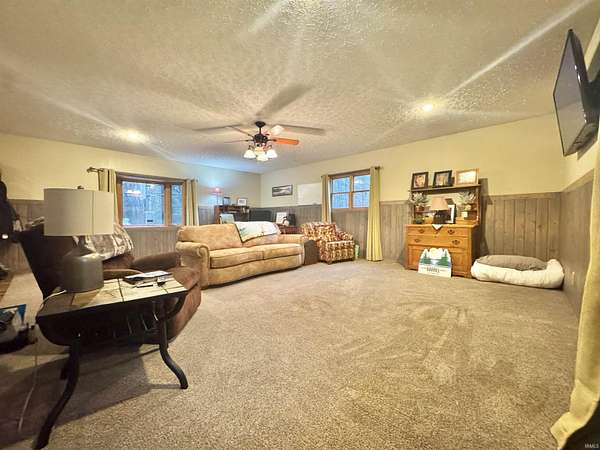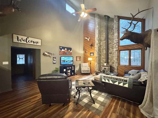 Hidden gem nestled back on a quiet lane, you will find this 3 bedroom 2 bath home less than 5 minutes from Shakamak State Park all situated on 4.93 acres! Inside includes open floor plan Kitchen, Living, and Dining areas with HUGE bonus room. Living room boasts vaulted ceilings with stone accent wall, wood stove, and plenty of windows to bring in natural light. 2 main level bedrooms can be found as well as a recently updated full bathroom with extra vanity/storage space. Master bedroom suite can be found upstairs with an adjoining bathroom and walk-in closet all recently updated as well. Oversized Main level laundry/mud room perfect to step right into after being outside. Outside find not 1, but 2 detached garages. 26x30 pole barn with 2 garage bays and patio area. 18x24 detached garage includes a lean-to for extra storage. Enjoy quiet evenings off the back deck. Located On dead-end road! Won’t last long!