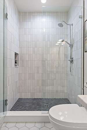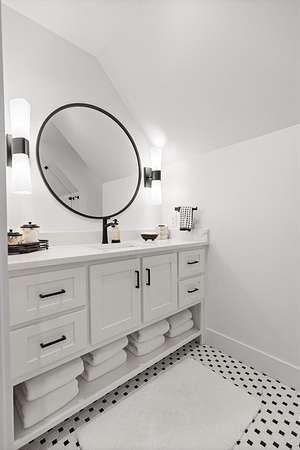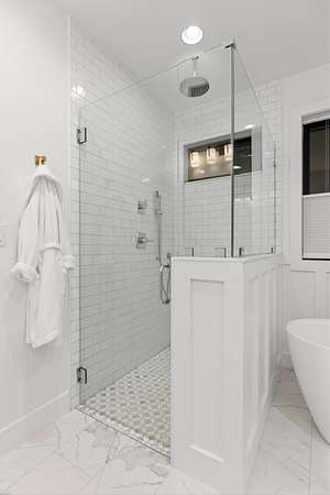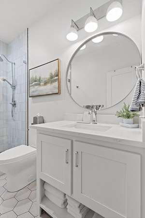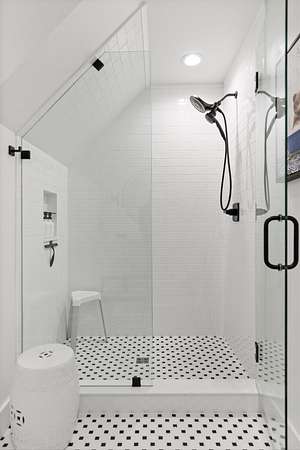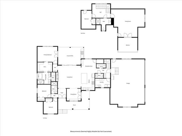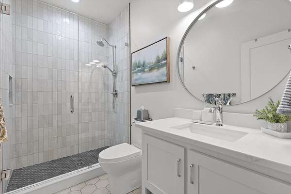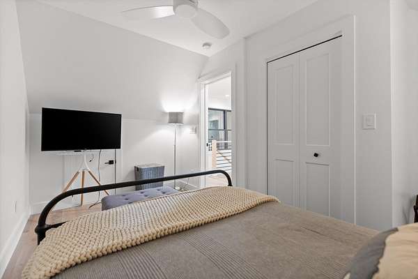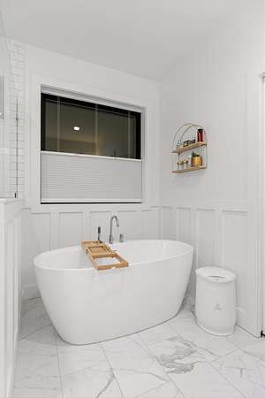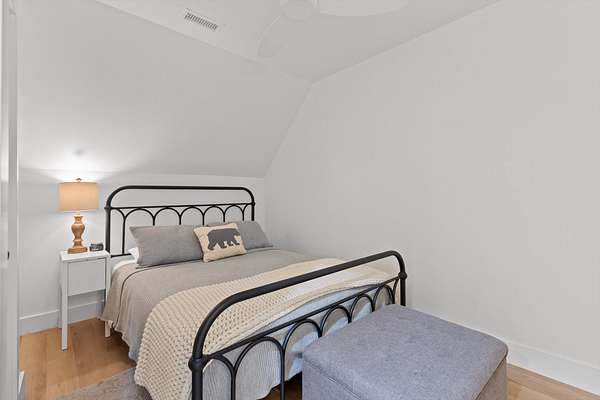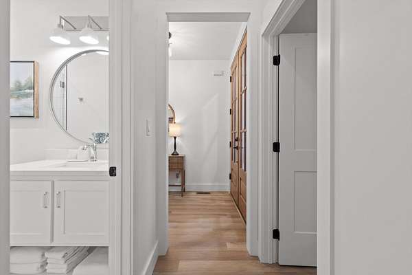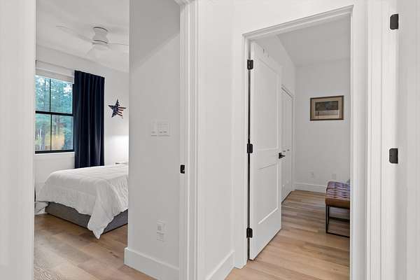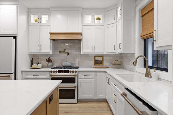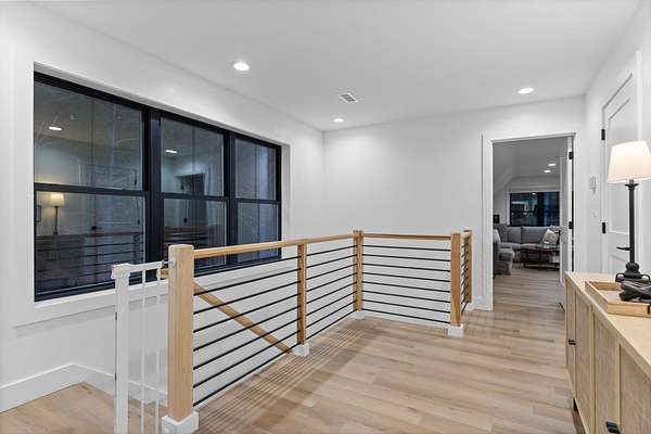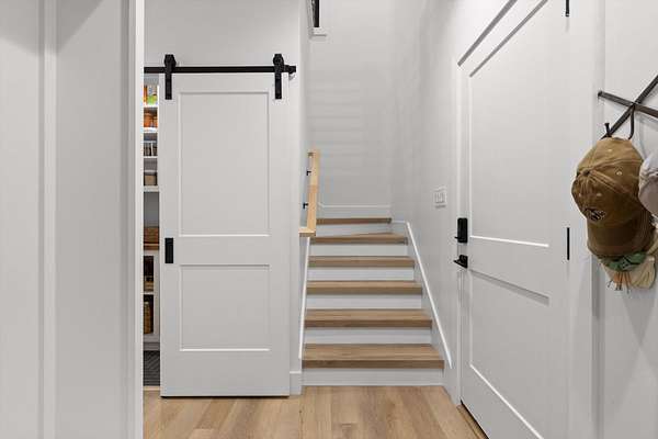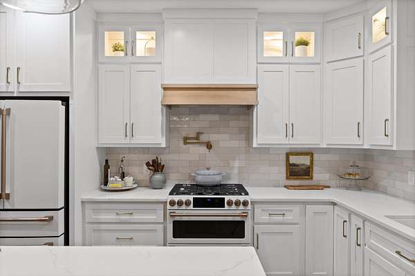 Back in the living room, a charming breakfast room with custom built-ins and porch access flows into the designer kitchen featuring high-end appliances, walk-in pantry, pot filler, abundant cabinetry, and a counter-height island with bar seating, along with additional dining space with a built-in booth. Nearby, pantry storage, a stylish laundry room, and half bath enhance the home's functional layout. The main-level primary suite offers a spacious walk-in closet and spa-like bath with soaking tub, dual vanities, and separate tiled shower, while two additional bedrooms share a full hall bath. Upstairs, an additional bedroom, full bath, and generous flex or bonus room open to a stunning porch, providing versatile space for guests, work, or recreation.