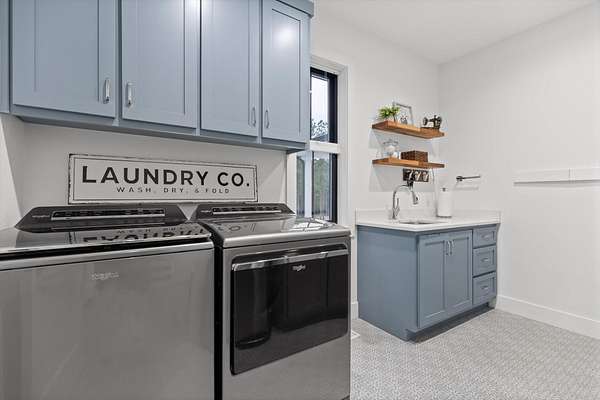 - Dishwasher, Disposal, Dryer, Electric Oven, Gas Range, Microwave, Oven, Range, Refrigerator, Stainless Steel Appliance(s), Washer