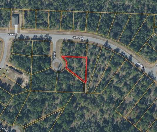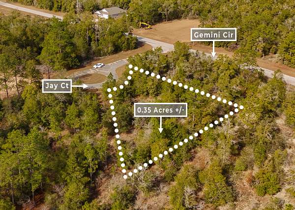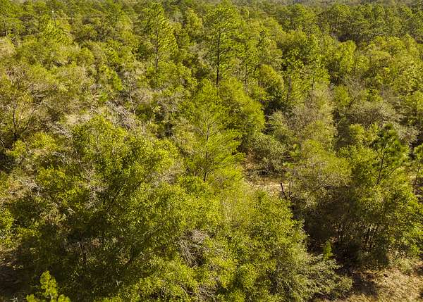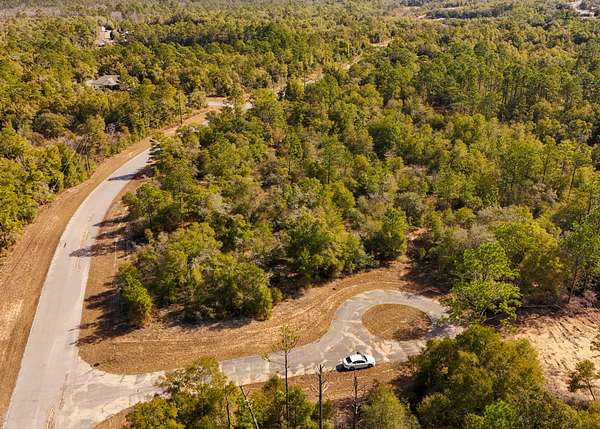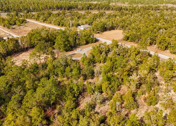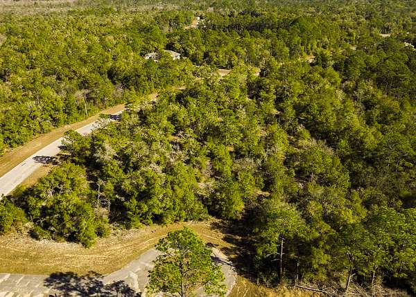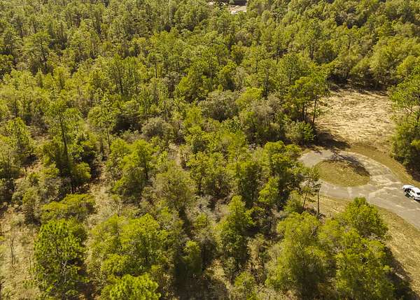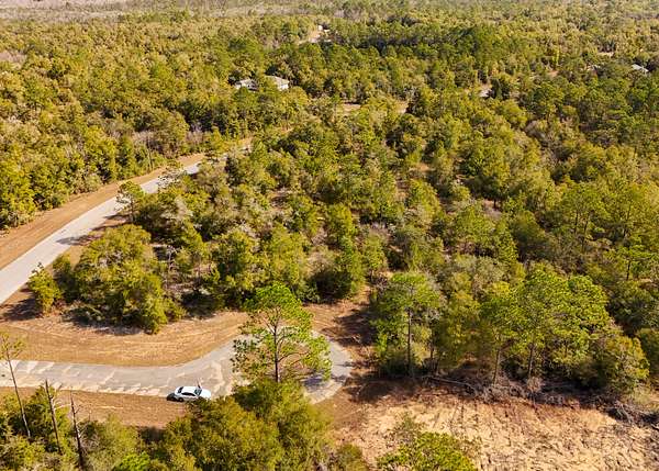 The property is situated in a lightly developed neighborhood characterized by pine flatwoods, palmettos, and native vegetation that is typical for this part of the Florida Panhandle.