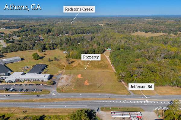 UC Commercial Properties First Team is pleased to present Tract 2 which includes 8.593 acres of prime land located along Jefferson Road (Highway 129) in Athens, Georgia, adjacent to Southside Church (8144 Jefferson Road). This property offers exceptional visibility and accessibility, featuring 332 feet of road frontage and an existing deceleration lane already installed--ideal for commercial development along this busy corridor that sees 19,800 vehicles per day.Zoned AG and in the process of being rezoned to CRC (Commercial-Rural Corridor), the site provides flexibility for a wide range of development opportunities. Whether your vision includes retail, office, service-based, or hospitality use, this tract is ready to accommodate it. Water and electrical utilities are available at the property, streamlining the path to development.