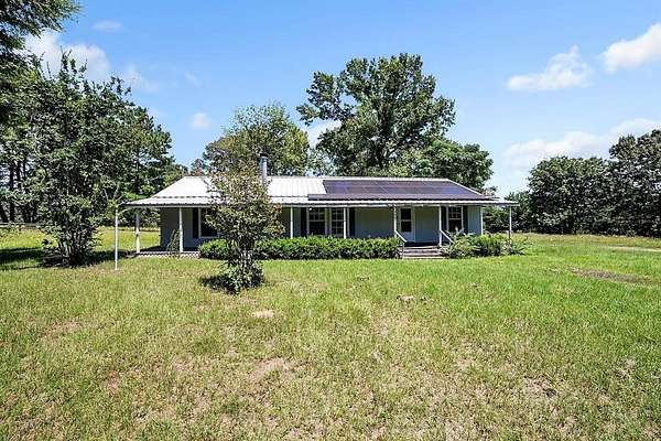 NEW HVAC and solar panels recently installed! Tucked among the trees in your quiet corner of far East Texas, this welcoming 3-bedroom, 2-bath home offers the perfect blend of peaceful seclusion and comfortable living. Thoughtfully laid out with an open design, it feels both spacious and cozy, enhanced by warm natural light and a beautiful wood-burning fireplace that anchors the living space. The kitchen offers practical flow and storage, while the primary suite is a relaxing escape with private views of the surrounding land. Outdoors, enjoy quiet mornings on the covered deck and watch wildlife move through your private, wooded 3-acre retreat. If you're craving nature, privacy, and charm--all without sacrificing convenience--this home delivers. Come see it today!
