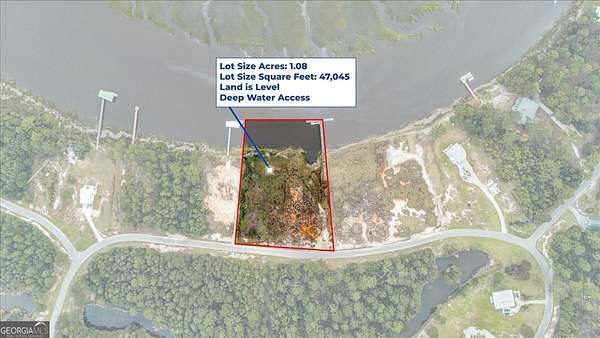 Welcome to Dolphin Island Community. Here's a Great Opportunity to build your deep waterfront dream home in this gated island community located in Liberty County. Large 1.08 acres waiting for its new owner. Recently cleared, including water and electric completed for you to start building! This beautiful subdivision has all paved roads, a fully operating water system, fully operating sewer system and a fully operating HOA. The HOA owns approx. 30-40 acres of common area land and is currently working on a proposed boat lift in the community. Walking trails and more are in their future plans!! Amazing Views! This gated community has an active clubhouse, fully maintained community dock, deep water access and two ponds on this island. Come live the lifestyle of Dolphin Island today!!