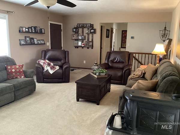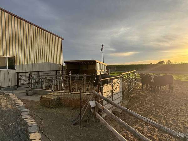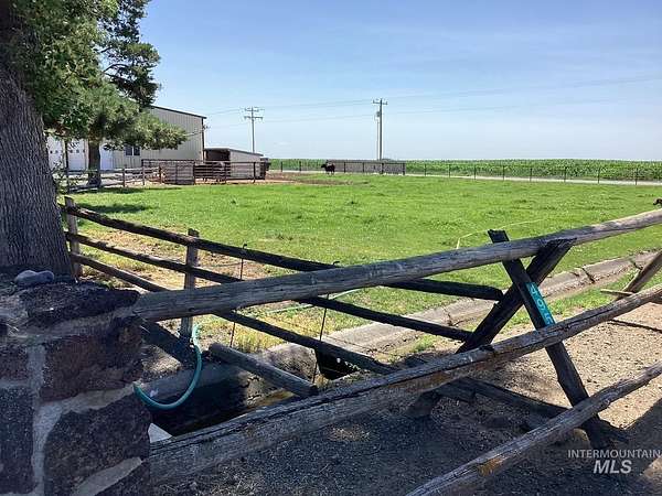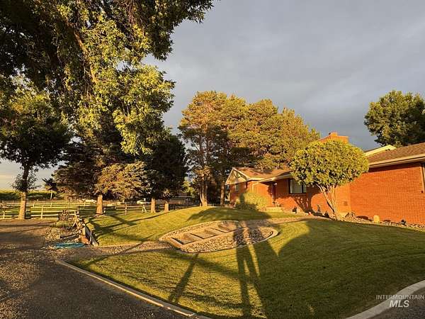 Ranch home with 4 bedrooms/2 baths & 2 car garage on 8+ irrigated acres SW of Jerome. This corner lot offers beautiful sights & sounds of the country with close proximity to schools & shopping while experiencing country living. 2 bedrooms/ 2 baths are on the main level with a nice large room off the kitchen that can be accessed from the backyard. The kitchen has ample cabinet space with both a freestanding range & wall oven for those who like to cook/bake. The living room has a corner fireplace on the main floor. The lower level consists of a wood burning stove, 2 bedrooms, family room, root cellar & utility room with a wash tub & storage cabinets & accessed from garage or inside the house. There are two large concreted floor shops 30x40' & 35x60' with multiple doors. House & grounds are immaculate with a large garden area with apple, apricot, plum & mature shade trees. This ranch has numerous pastures with fencing, corrals and stanchions giving you that open country feeling. Well pump replaced July 2025. ***Motivated Seller says bring an offer and let's negotiate