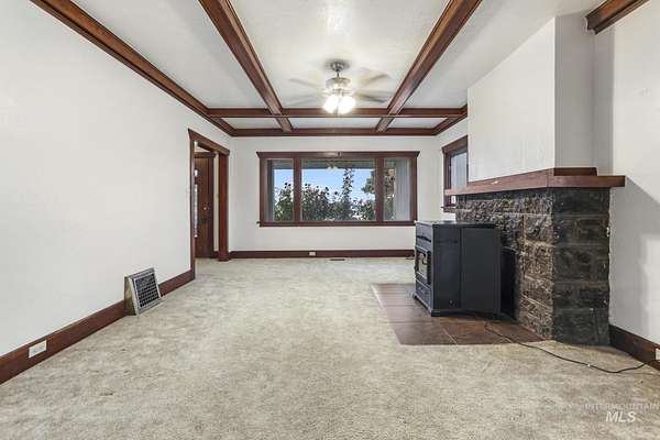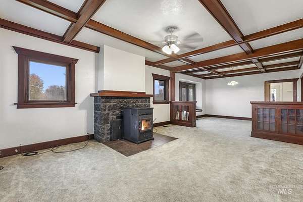 Welcome to 476 E 200 S-a picturesque property where classic character meets wide-open living. Nestled on over an acre of lush green space and backing to the golf course, this 2,252 sq ft Craftsman-inspired home combines vintage charm with functional space. Inside, warm wood trim, built-in cabinetry, and coffered ceilings set a tone of craftsmanship rarely found today. The spacious living room centers around a pellet stove framed by stone, offering cozy evenings in every season. The main-level office provides excellent flexibility as a guest suite or potential fourth bedroom, complete with a sunny window-seat reading nook. Outside, mature pines frame the home's covered porch, while the expansive lawn and surrounding trees create a sense of privacy and peace. The 36' x 40' detached garage/shop offers endless possibilities-vehicle storage, workshop, or space for outdoor gear. And with no CC&Rs, you'll have the freedom to garden, park your RV, or expand as you wish. All this, just minutes from local conveniences yet surrounded by nature and open views. Whether you're seeking serenity, space, or small-town charm, this property truly has it all.