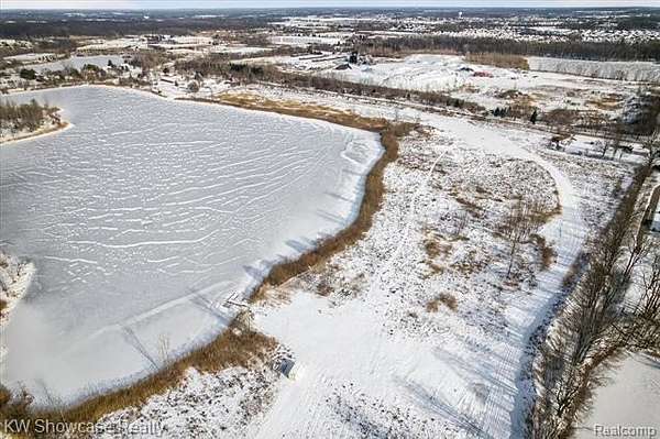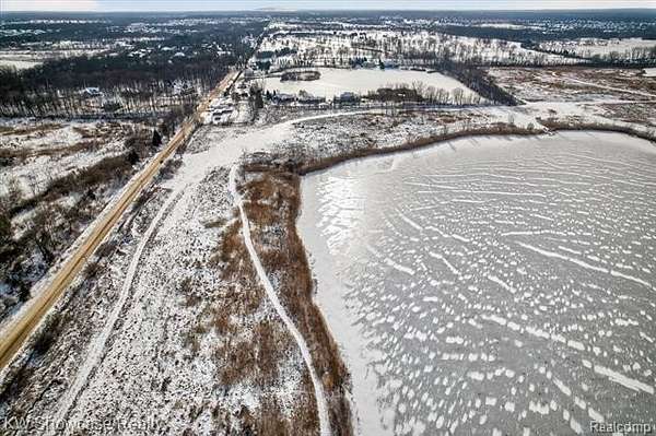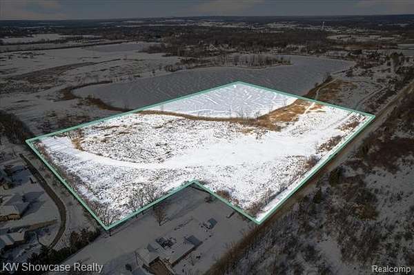 Extraordinary All-Sports Lakefront Estate Opportunity | ~20 Acres | Lyon Township. An exceptionally rare offering in Lyon Township, this breathtaking ~20-acre residential lakefront parcel presents the perfect canvas for a private, estate-style retreat. With approximately 1,100 feet of pristine frontage on an all-sports lake, the property delivers panoramic water views, unmatched privacy, and direct access to water skiing, boating, and year-round lake recreation. The land is level and build-ready, ideally suited for a custom ~5,000 square foot luxury residence, with ample room for outdoor living spaces designed to capture the serene lake setting. The expansive acreage also allows for the addition of a large pole barn or auxiliary structure, offering flexibility for car collections, recreational equipment, or hobby space. With no HOA restrictions, this property provides true freedom of ownership--an increasingly rare advantage in a luxury lakefront setting. Whether envisioned as a full-time residence or a generational estate, the scale, frontage, and setting combine to create a once-in-a-lifetime opportunity. Secluded yet conveniently located, this premier parcel offers the ultimate blend of privacy, lifestyle, and long-term value in one of the area's most desirable communities. The lake is spring fed and ranges from 35'-40' deep. Buyer must use Seller's designated Builder, Paul Elkow Building Company. Additional MLS Listing with proposed home and video will be forthcoming. Please book any viewing through Showing Time. Access details to be provided.