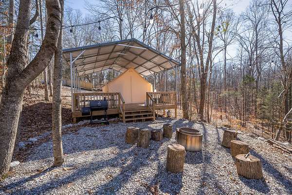 An exceptional opportunity to own a privately situated unrestricted 11+- acre recreational parcel near the shores of Center Hill Lake, just a stone's throw from the Johnson's Chapel boat ramp. Currently operating as a short-term rental retreat, the property features two custom glamping tents and a thoughtfully reimagined vintage Airstream, offering a turnkey escape immersed in nature. Designed for comfort while embracing the outdoors, the retreat includes a dedicated outdoor bathhouse and showers, blending rustic charm with modern convenience. The setting provides a peaceful, secluded atmosphere while remaining easily accessible for guests and owners alike. Surrounded by mature trees and natural beauty, the land offers ample room for expansion, additional recreational use, or simply enjoying the tranquility of lake life. Whether used as an income-producing property, personal weekend getaway, or future development opportunity, this parcel delivers flexibility and lifestyle appeal. Located just over an hour from Nashville, this unique Center Hill Lake offering combines privacy, proximity to water access, and established rental potential--an increasingly rare find in one of Middle Tennessee's most sought-after lake destinations. In addition to Center Hill Lake, nearby attractions include Honky Tonk Central Golf and Restaurant, Burgess and Fancher Falls, Fall Creek Falls, and Edgar Evins State Park to name a few. (Notes: The property's infrastructure hosts a 400 amp electric service, septic approved for five bedrooms, and county utility water. Property also holds the address of 300 Tiny Shiny Ln. although not always populated on GPS.)