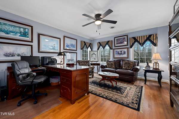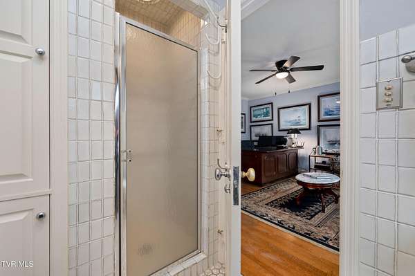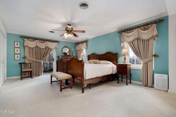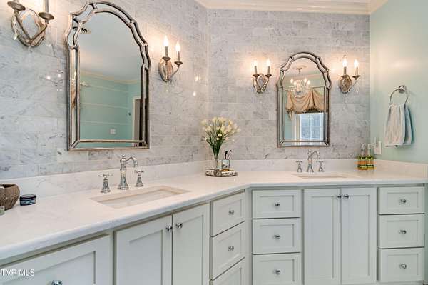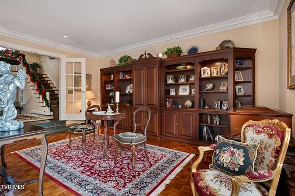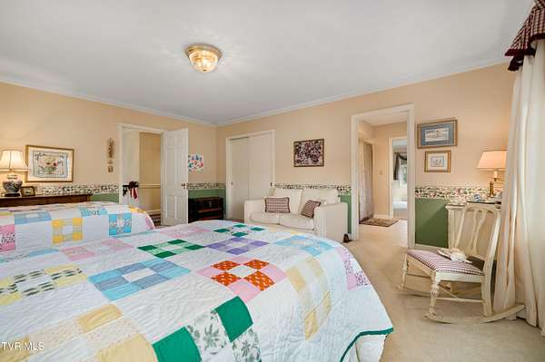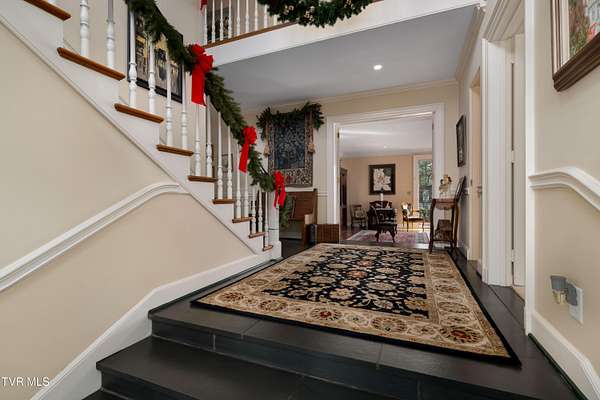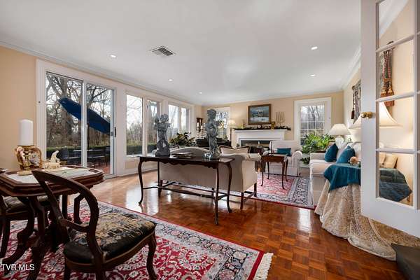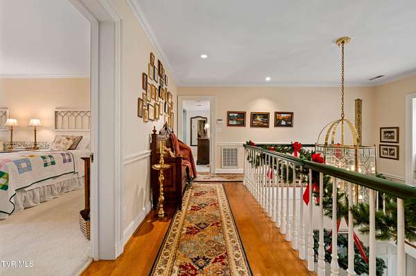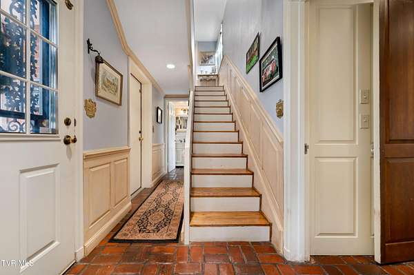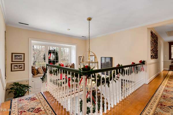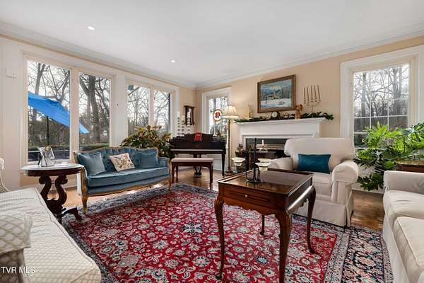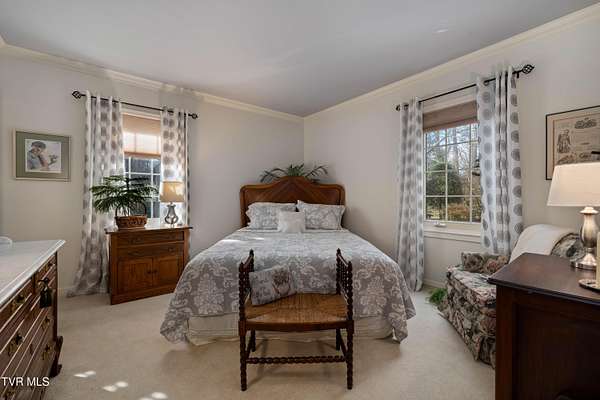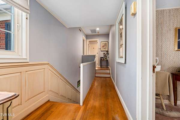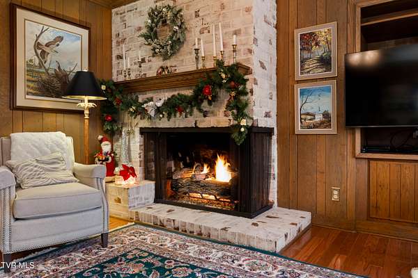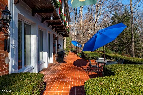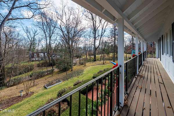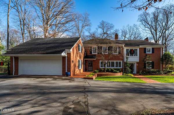 Tucked away on a highly sought-after private drive in the heart of Johnson City's historic Gump Addition, this stunning estate offers rare privacy, timeless character, and thoughtful modern updates on over 1.65 acres. A long wrap-around driveway welcomes you through mature trees, revealing a beautifully maintained property featuring a large fenced side yard with storage shed and a charming brick front terrace perfect for relaxing or entertaining. Inside, the flagstone foyer sets an unforgettable tone, highlighted by a graceful wrap-around staircase and a picturesque window seat at the landing. The oversized living room is flooded with natural light from expansive windows overlooking the terrace and is anchored by a masonry fireplace with gas logs - equally suited for elegant entertaining or comfortable everyday living. Rich chestnut walls envelop the den in warmth and character, where a second masonry fireplace and dedicated wet bar create an inviting retreat. The spacious dining room easily accommodates large gatherings and flows seamlessly into the modernized kitchen. Custom millwork conceals the laundry and pantry area, while the rear hall offers convenient access from the garage and features a secondary staircase leading to the bonus room and private guest quarters. The upper level features a truly impressive primary suite with a beautifully remodeled bath and direct access to a private rear balcony overlooking a serene wooded setting. Two additional bedrooms share a Jack-and-Jill bath, while a fifth bedroom offers flexibility for guests, office space, or hobbies with convenient rear stair access. A rare main-level bedroom suite provides an ideal option for a secondary primary or private guest accommodations. The outdoor spaces are as exceptional as the interior, offering the perfect balance of open lawn, mature landscaping, and peaceful privacy. This is a rare opportunity to own a historic estate that has been meticulously maintained and thoughtfully modernized, all within one of Johnson City's most desirable and established settings. Buyer/Buyer's agent to verify all MLS info.