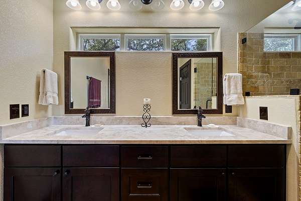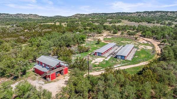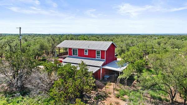 Discover the perfect blend of rustic charm and modern living on this stunning 60 acre unrestricted ranch, ideally situated just minutes from Johnson City in the heart of the Texas Hill Country. This property offers a rare opportunity to enjoy peaceful country living with the convenience of nearby amenities and attractions. The main residence is a beautifully designed dog-run style home featuring 4 spacious bedrooms, 2.5 bathrooms, and rich stained concrete floors throughout. The open-concept kitchen is perfect for entertaining, with stylish finishes and ample space for gatherings. Step out onto the expansive front porch and take in breathtaking views of the rolling Hill Country landscape. There is also a nice sized storage shed close to main home. A large pond attracts abundant wildlife, offering excellent opportunities for nature watching or recreational hunting. Additional improvements include a well-appointed barn with a 2-bedroom, 1-bath apartment ideal for guest quarters, a rental opportunity, or ranch staff.