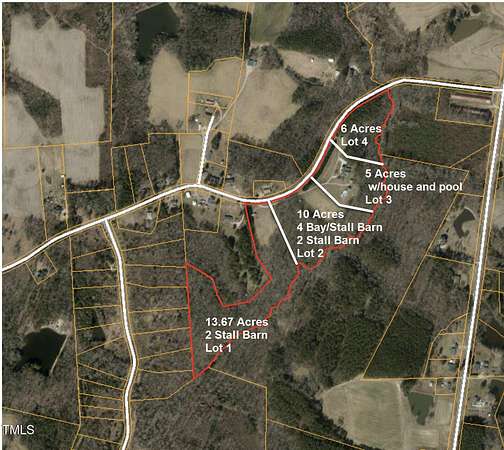 Listed concurrently on 11 acres if you would like to have additional acres in MLS 10115119. Subject current address is 413 Johnson Town Rd, but the Lot size will be updated to 5 acres and a new address may be assigned. Log and Craftsman style home on 5 acres with detached Pool House, your own private oasis next to your inground pool and waterslide-perfect for hot summer days and cooling down. Each bedroom in this home has its own bathroom. Two possible master bedrooms, one with wider doors and handicap capable access. The log construction offers warm wood accents and unique features like double sided fireplace and a front porch bed swing help set this stunning home apart from nearby new construction. Vaulted ceilings, stone fireplaces, loft office, built in unique sinks and fixtures, are some of the many features that make it different from all others. A private retreat, a possible horse farm, a pool party and guest house, all make this home the perfect place to live and entertain. Check out the additional lots and Barns, listed separately, that could be added to make your equestrian dreams come true! A total of 34.67 acres for sale in 3 or 4 separate proposed tracts.
