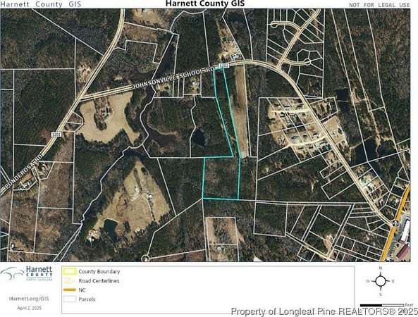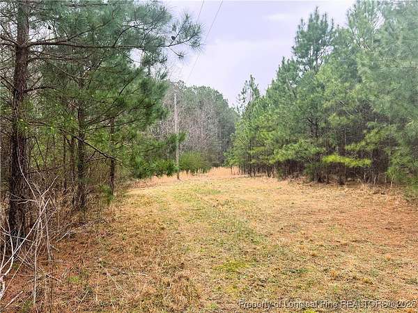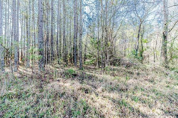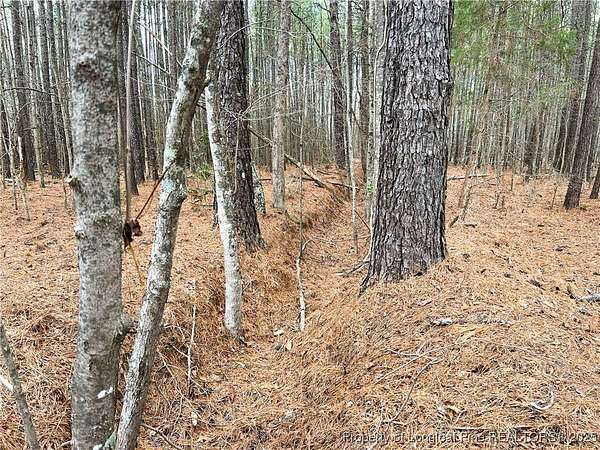 Discover 14.2 wooded acres in Western Harnett County with 153 feet of road frontage on Johnsonville School Road. This beautiful property features a mix of mature trees and established trails, offering both seclusion and accessibility. A 2013 Soil Evaluation indicates potential for a four-bedroom home (perk test still required). A peaceful creek runs through the southwest corner, adding to the natural charm and appeal. The larger, square-shaped section at the rear-approximately 8 acres-is bordered by trails along the northern and western edges, perfect for outdoor recreation or exploring. Surrounded by other 10+ acre tracts, this land offers privacy and a haven for wildlife enthusiasts-deer and turkey are abundant. Whether you're looking to build your dream home, hunt, or simply escape to nature, this property offers it all.