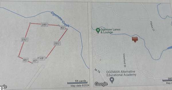 Est $323/moPartially wooded 1.32 acres lot; paved road, subdivision setting, fronts Ogemaw Creek (West Branch of the Rifle River) plus deeded access to Flowage Lake; great location not far from beautiful downtown West Branch; approximately 2 miles from I-75. Property has municipal sewer. Additional lots available