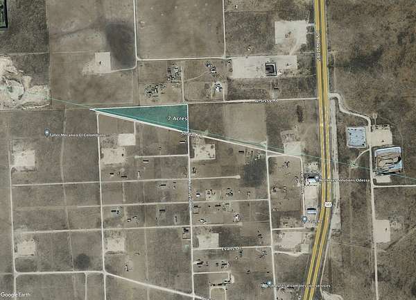 Est $892/moUnrestricted 7 Acres & Skating on the Ector Co Line, Quarter Mile West of Hwy 385. 2 Roads Access from 385 Sissy Rd & Jordan Ln. Triangular Tract with Lots of Frontage would make a Great Trucking Yard or Storage / Laydown Yard. Owner Financing Available as Low as 10% Down.