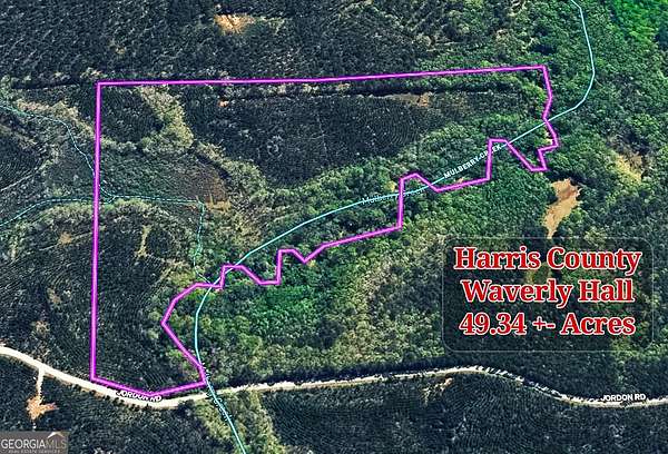 Welcome to 49+ acres along Jordan Road in Harris County. Situated along a quiet, county-maintained rural corridor in eastern Harris County, this property offers 530+ feet of road frontage and over 2,000+/- feet of year-round Mulberry Creek. The creek winds through a mix of hardwood bottoms and pine uplands, creating a landscape of gently rolling topography and fertile lowlands. The shaded creek bottoms feature mature oaks and hardwoods, natural travel corridors for wildlife, and pockets of open areas used for food plots, and includes an internal road system. A couple of natural duck swamps further enhance the property's wildlife appeal. Positioned within a highly desirable niche catering to the "big buck" recreational land and teeming with wildlife! the property is well suited for weekend getaways, hunting retreats, or a private cabin setting. With limited development and no significant commercial influence, the area maintains a private, natural setting while remaining within a short drive to Waverly Hall and Columbus. Fiber optic and electricity available along Jordan Road. Manufactured, traditional, and barndominium homes are permissible. Travel times: Columbus 30 minutes; Macon 60 minutes; Peachtree City 70 minutes; Hartsfield-Jackson Atlanta International Airport 90 minutes. For Alabama neighbors: Auburn 70 minutes; Montgomery 2 hours; Birmingham 3 hours. For Florida destinations: the Panhandle approximately 4 hours; Ocala 5 hours; Orlando 6 hours; and Fort Myers less than an 8-hour drive. Plat Available. This area of Harris county will require septic and well. Harris County Schools! For Navigation utilize coordinates 32.7155, -84.75445 or the nearest residential address to the south 1276 Jordan Rd, Waverly Hall, 31831. Sign on property and corners marked.