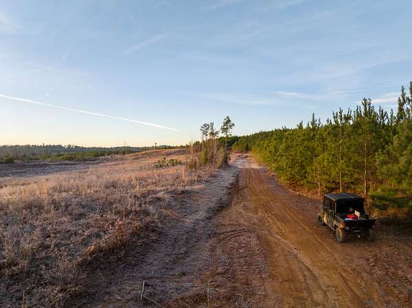 The property has road frontage on Jug Factory Road and Indian Pines Road, allowing easy access and the potential to purchase the land as a whole and divide it into smaller tracts. The timber is well balanced, with about 260 acres of mixed hardwood and pine, 60 acres of you5+- year old planted pine, and roughly 140 acres of naturally regenerated oak and pine. There are also about 30 acres of open fields and meadows, ideal for homesites or wildlife food plots.