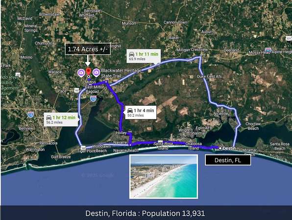 From Interstate 10 (I-10) take Exit 31 for FL-87 North toward Milton. Continue north on Stewart Street (FL-87) for approximately 3 miles. The property will be located near the intersection of Stewart Street and Julia Drive, directly next to 6466 Julia Drive and 6069 Stewart Street in Milton, Florida.