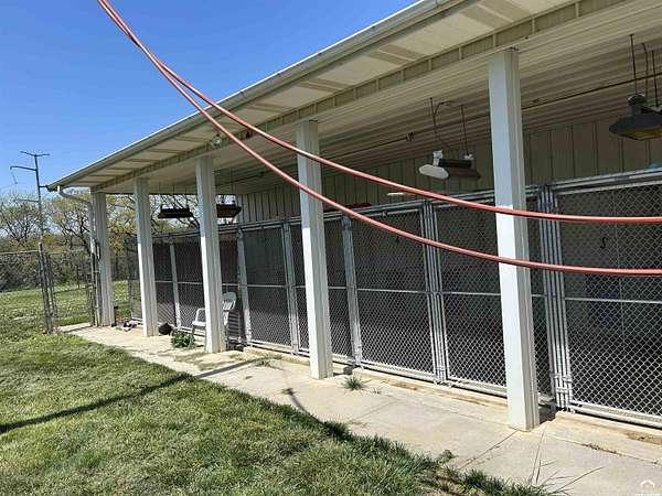Located near Perry Lake in Ozawkie, KS, this 11.17-acre property offers a rare combination of acreage, flexibility, and location. Adjoining U.S. Army Corps of Engineers land, the property provides privacy and open views in a highly sought-after lake area. The Morton 70x24 climate-controlled building with 10ft side walls is spray foam insulated and currently used as a commercial pet boarding facility. It includes indoor/outdoor kennels, concrete floors with integrated drainage, a dependable HVAC system, a bathroom, and an on-site septic system. With renovation, the existing structure offers residential conversion potential and could be adapted into a single-family home, barn dominium-style residence, guest quarters, or live/work property. The land allows room for additional outbuildings, outdoor amenities, or future expansion while maintaining usable acreage and lake-area appeal. This property may be used as a commercial site, mixed-use opportunity, residential retreat, or long-term investment. A versatile offering near Perry Lake, it presents multiple options in an established Ozawkie, Kansas location.
