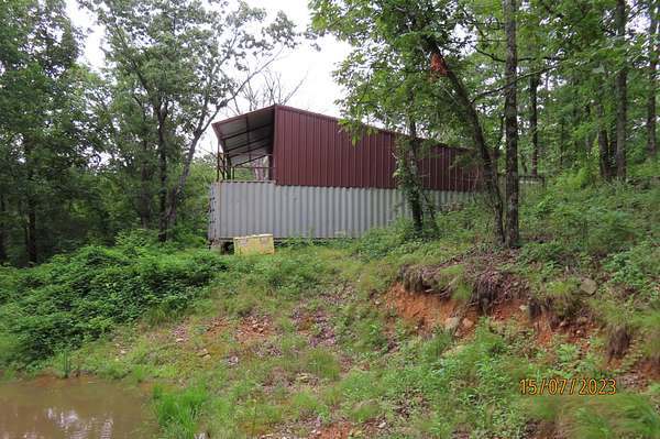 Est $344/moA great place to be for peace and quite is this secluded 8.9 mountain acres only one mile off the Indian Highway approx ten miles from Talihina and not far from Honobia. Owner has started an off grid 2 story cabin made with three conex containers welded together and a large metal insulated building in between consisting of approx 3200 sq ft. Design is for three bedrooms, living area, parking an atv or a pick up inside and lots of storage room. There is a pond, hunting area and a spot to park an RV. .