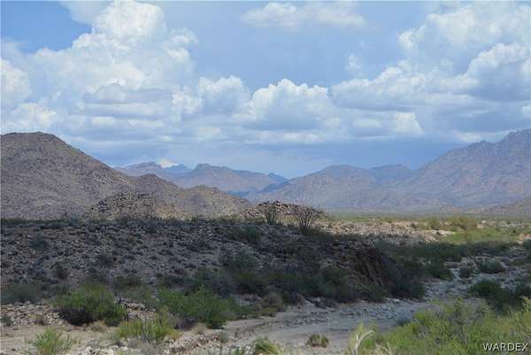 Nearly 5 acres of desert bliss. Private location, but close to Yucca. Incredible panoramic views of the Hualapai mountains, big views of the Black Mountains. About half of the parcel is useable, the other part is an impressive scenic wash which provides a wildlife corridor and makes this property unique. Rock cliffs and wildflowers abound. Power lines are near (next to property line) and could be investigated for grid power. The road has been recently graded, and no neighbors at all for now. It's a bit rocky in the last 1/4 mile or so, and there is a pretty good grade at the beginning of Anegam. High clearance/4 WD is recommended. Loaded with nice vegetation: Joshua Trees, Red Barrel, Ocotillo, and oh those wildflowers! Graded area for your camping adventure is already in. Possible owner financing. Don't miss this great value where Grand Mojave Desert meets blue Sonoran skies.