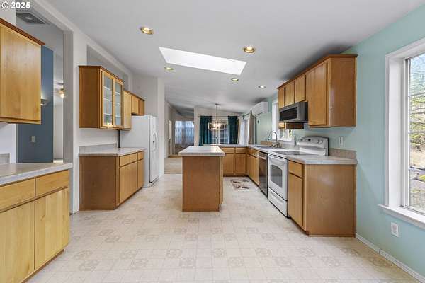 Spacious and stunning triple-wide home on 2 private acres! This property borders federal land and sits at the end of a quiet dead-end road, offering exceptional privacy with only a few neighbors nearby. Inside, you'll find 3 good size bedrooms and 2 bathrooms. This home features vaulted ceilings, skylights, and a generously sized kitchen with endless storage. The open great room sits alongside two secondary bedrooms on the west end of the home, while the primary suite enjoys its own private space on the east end-an ideal split floor plan. Outside, enjoy a large yard, a detached garage, and plenty of acreage for a firepit, garden, or expanded outdoor area. Room for a large shop if desired. Come see it-and make this beautiful property your home.